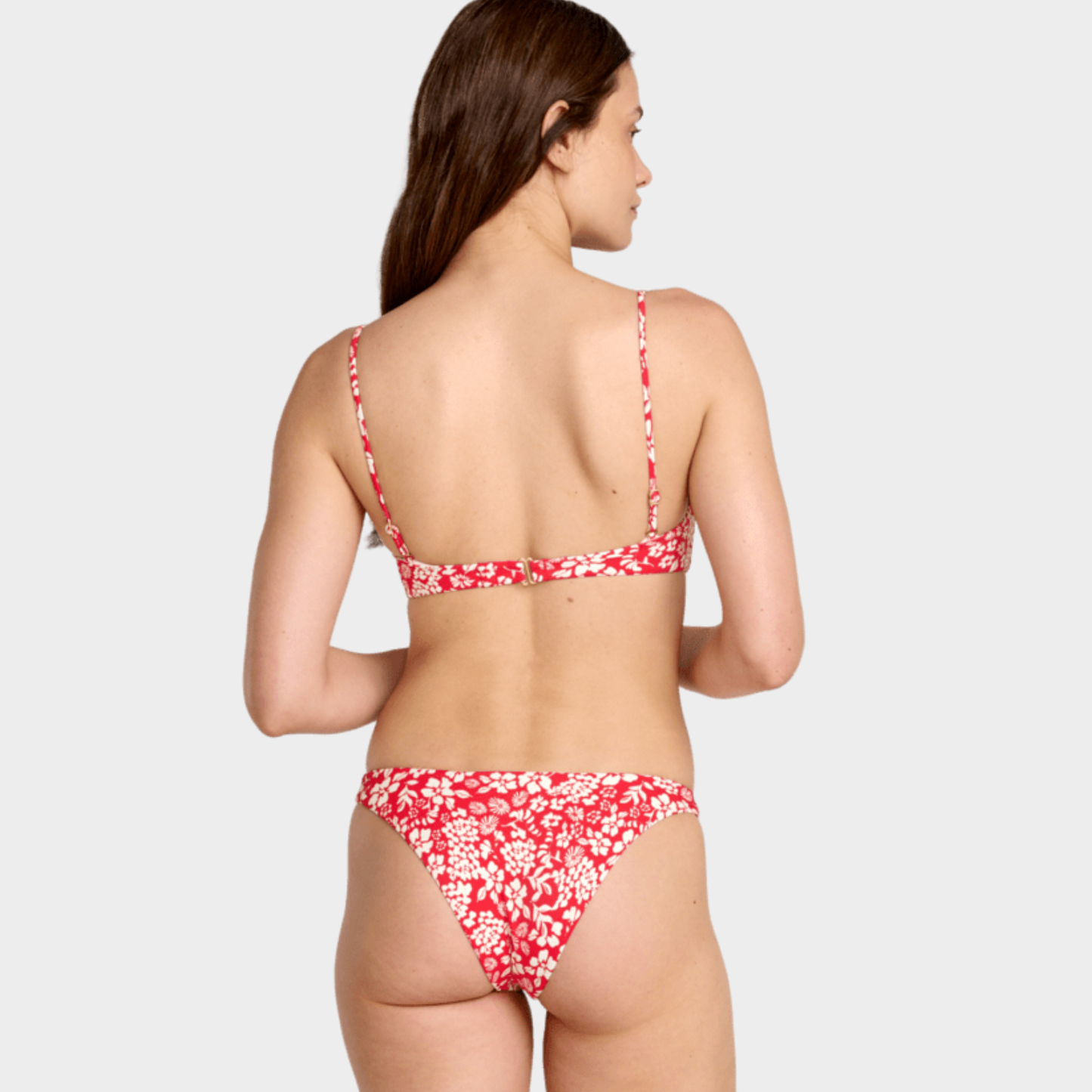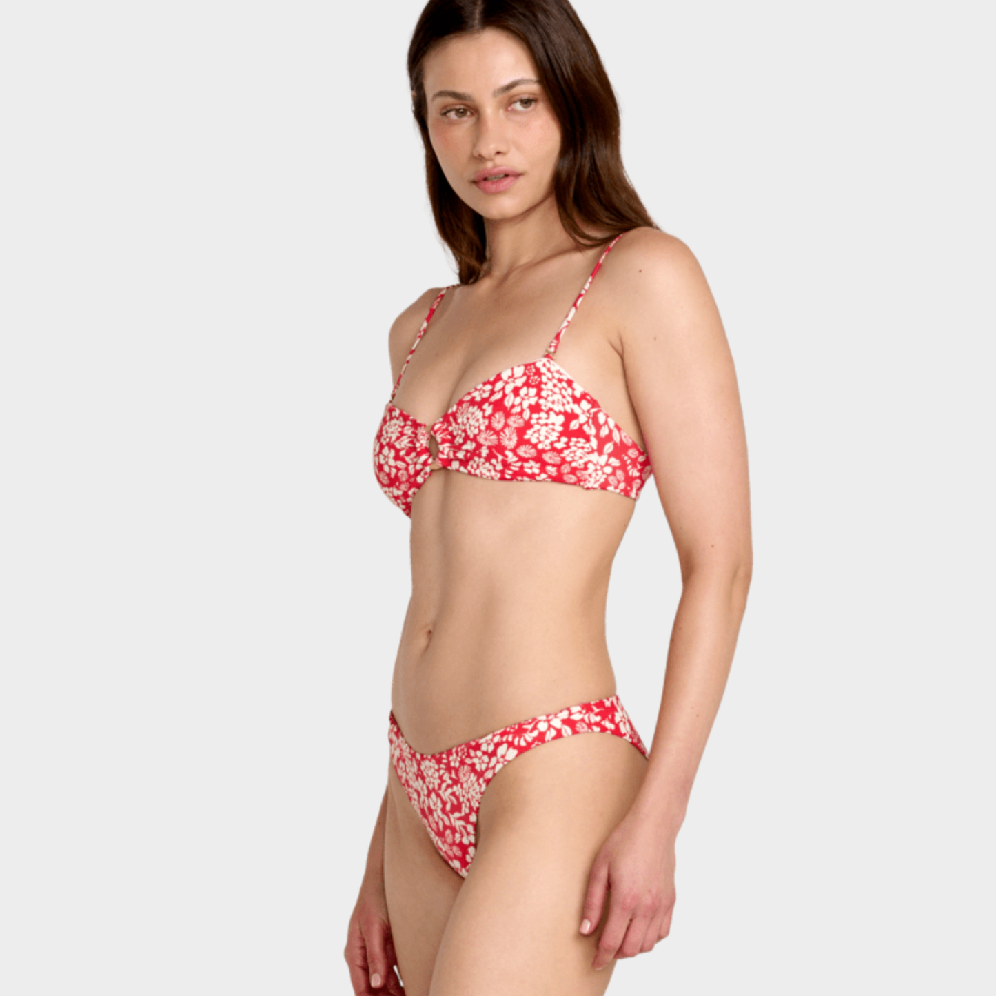 Women's bandeau bikini top with a floral design and center front o-ring detail