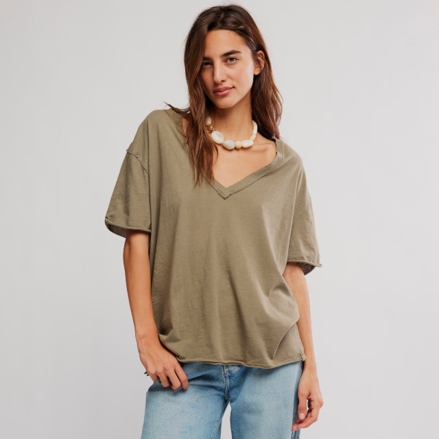 There's not much better than a big oversized tee. It's the easiest thing to throw on and go, and pairs with any type of bottom you want to wear. This staple from Free People's We The Free collection now comes with a flattering v-neckline.