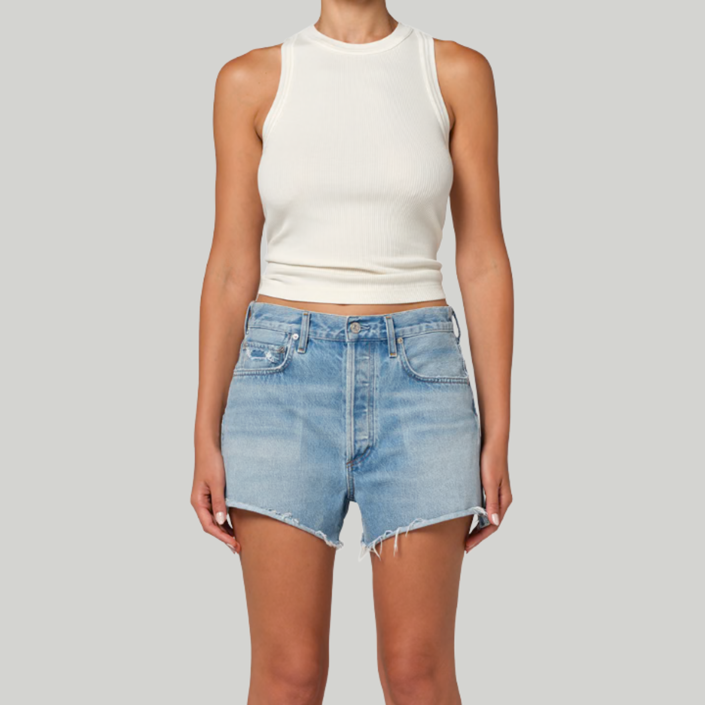 Denim shorts are a warm-weather staple, and these mid-rise shorts with laidback undone edges from Citizens of Humanity ensures a comfortable fit to pair with your favorite tees and sweaters.