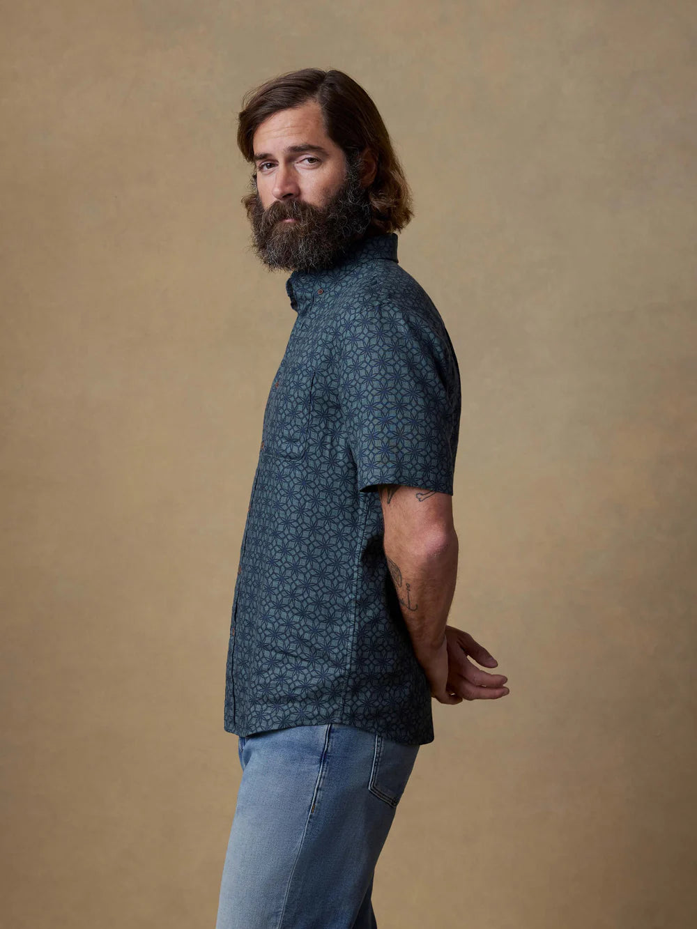A men's short sleeve button down from Faherty offering elevated casual style for warm weather days.