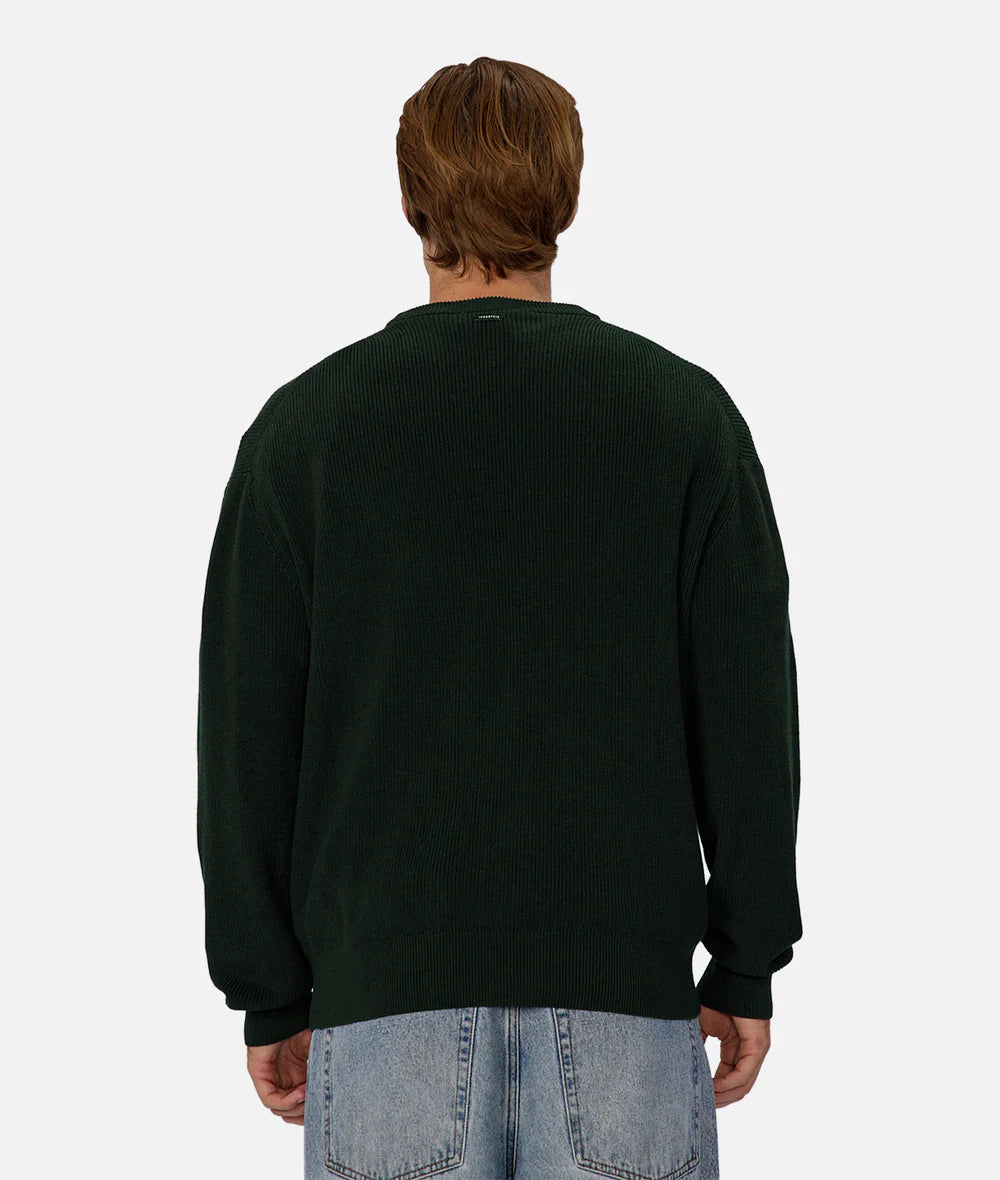 Men's long sleeve ribbed knit sweater with a crew neckline