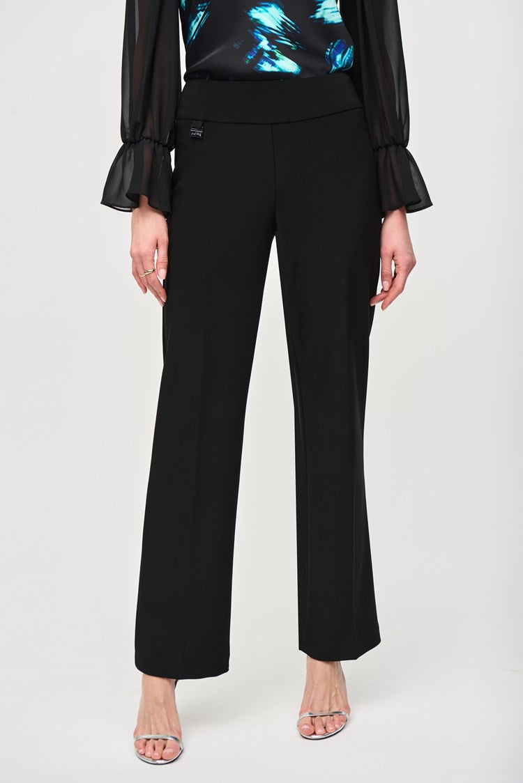 Regular price $95.00A flattering fit. Perfectly polished with a comfortable, on-trend fit made from a bonded silky knit material, these wide leg pull on pants from Joseph Ribkoff are a true wardrobe staple with endless styling options.
