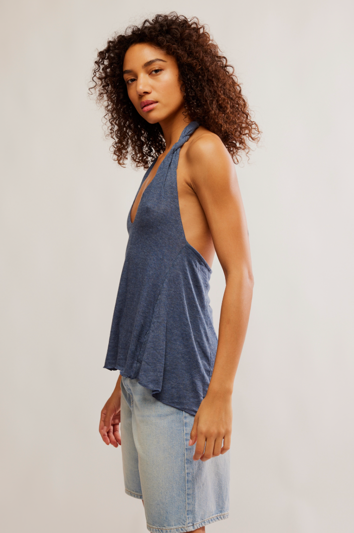 This draping halter top from Free People offers a unique twist strap design with a daring open back.