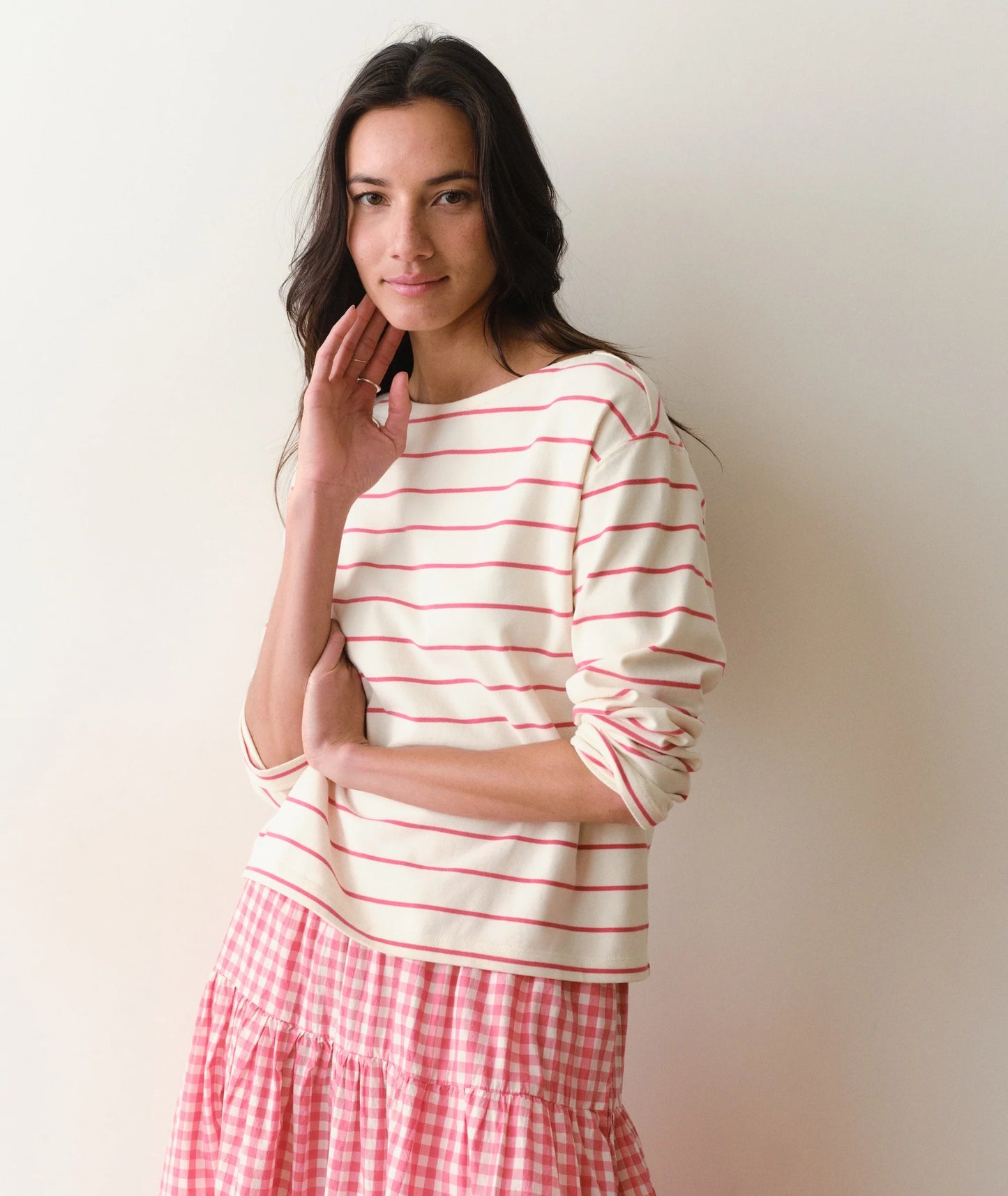 : Women's mariner tee with a boat neck and classic stripe design