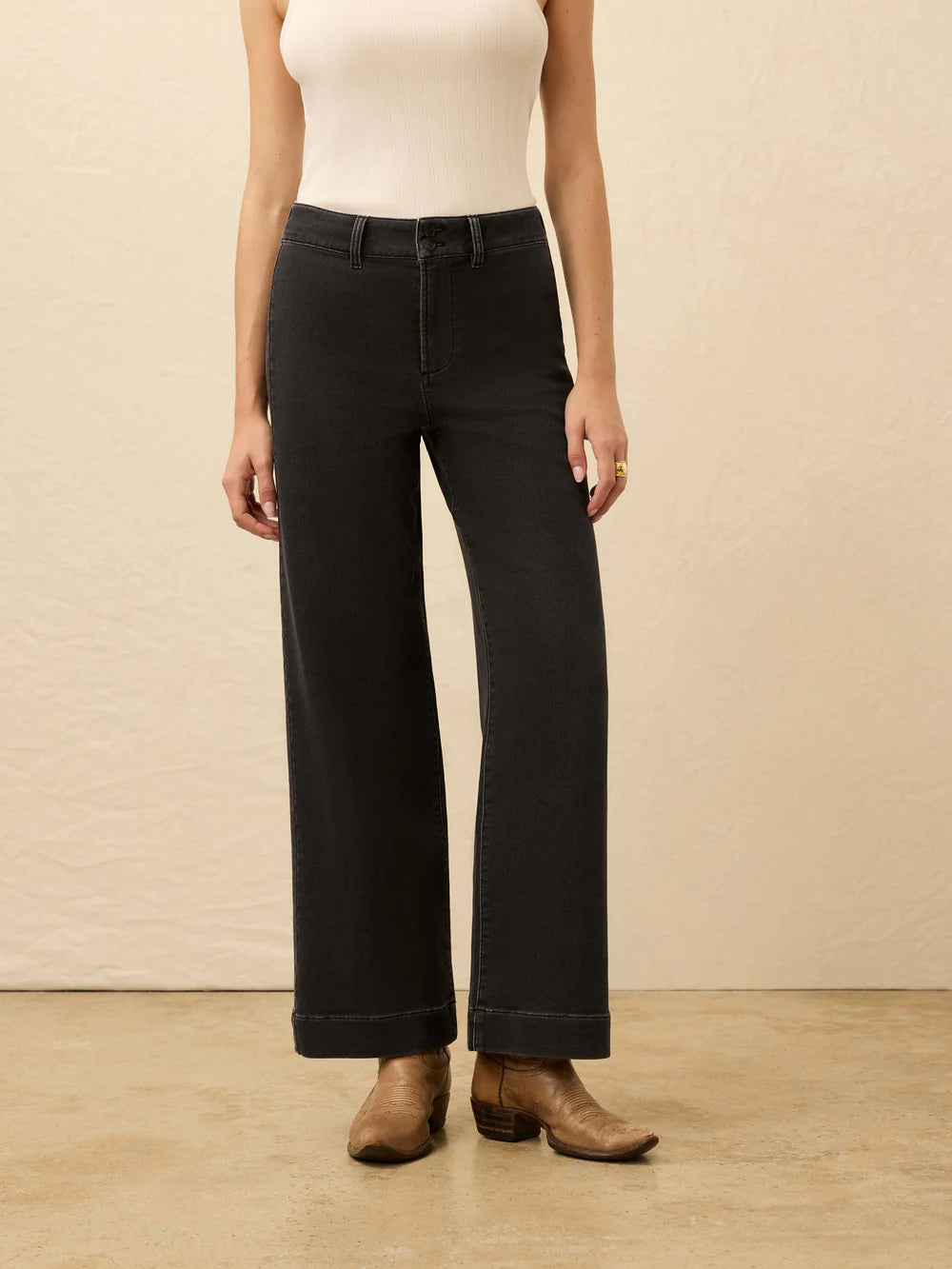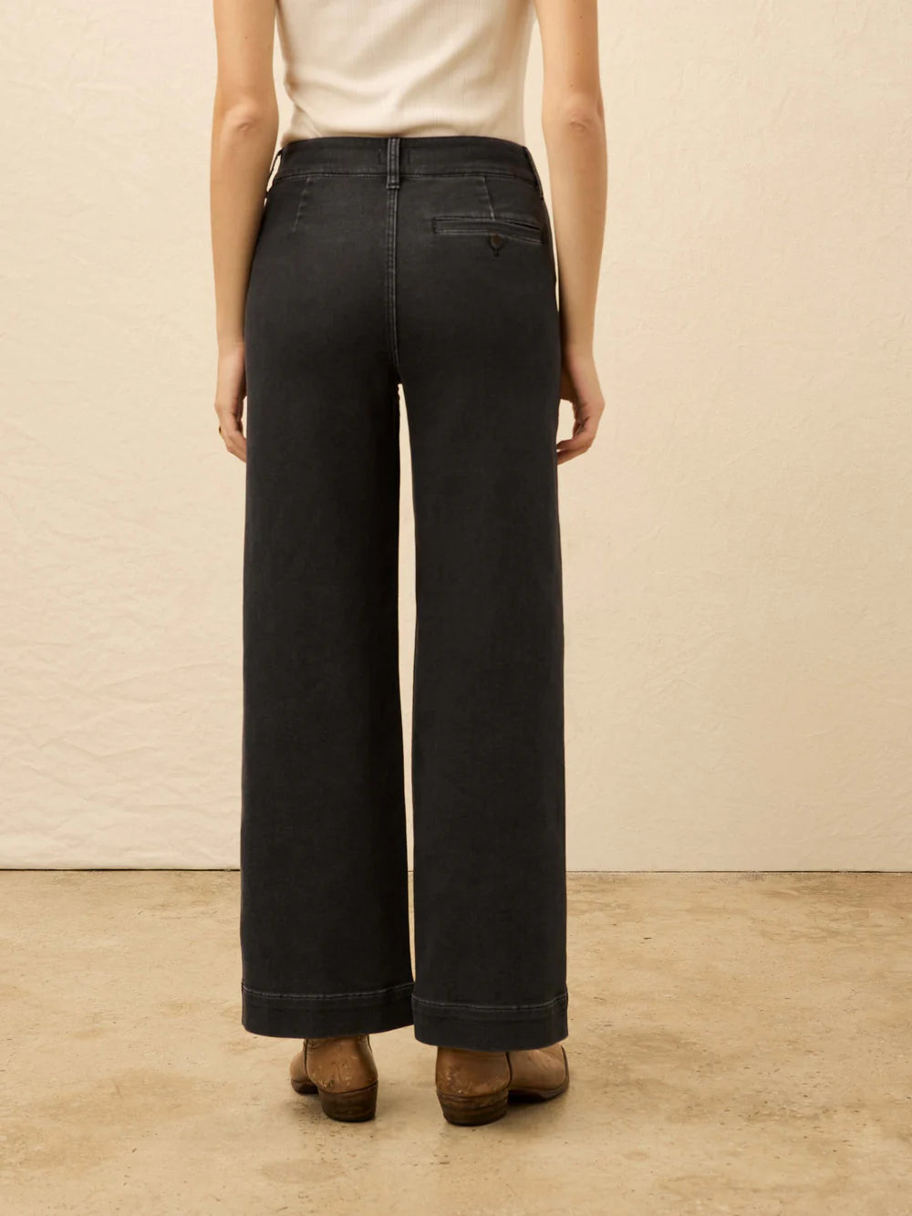 Women's mid-rise trousers from Faherty, offering a timeless wide-leg silhouette and all day wearability.