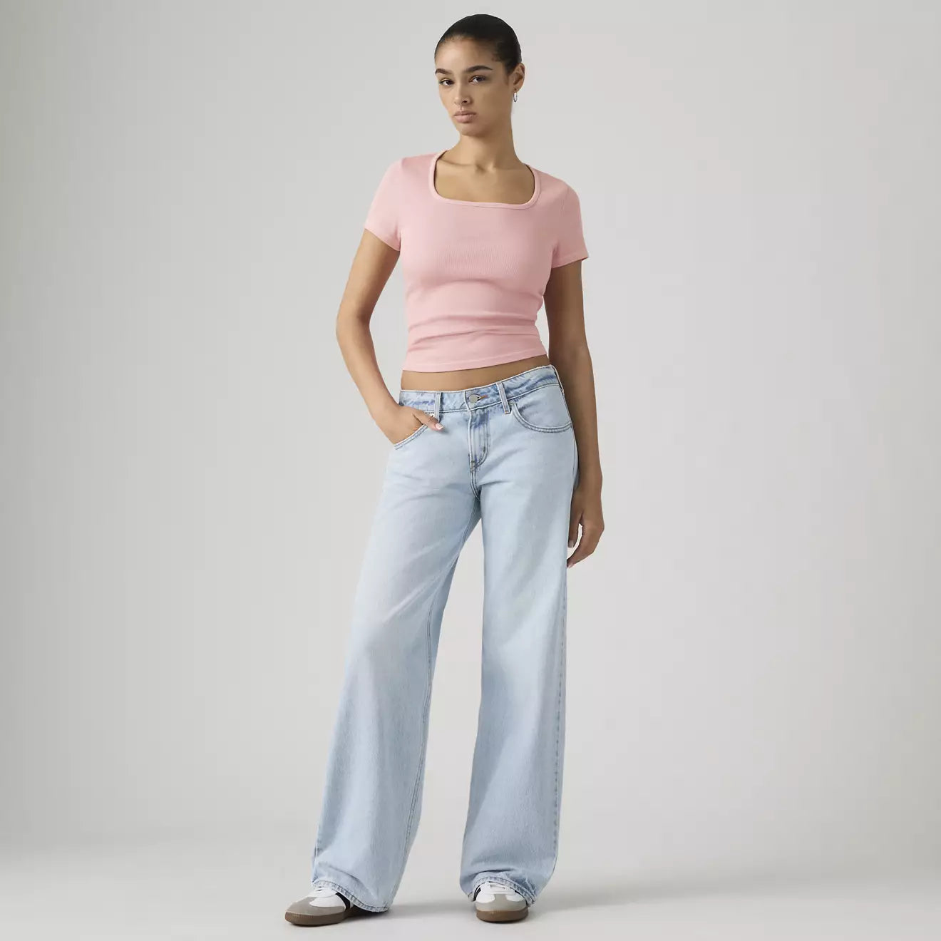 Levi's flattering Low Loose women's jeans feature a wide, straight leg silhouette for a little bit of everyday, Y2K style.