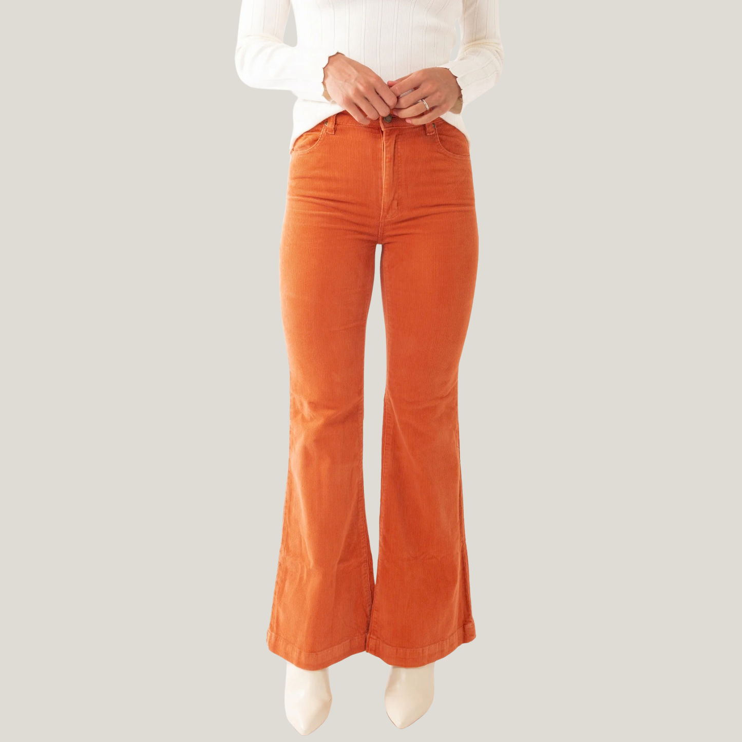 Perfectly polished women's corduroy flare pants from Rolla's offering a flattering fit with versatile styling.