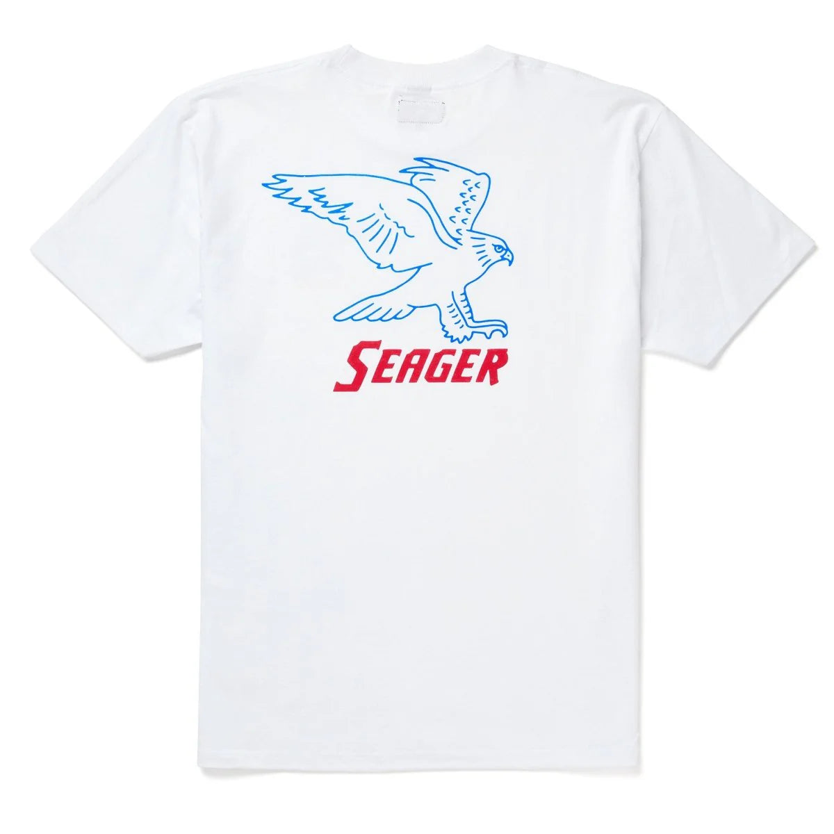 Seager's Talons Tee is a mid-weight style with a left chest and back water-based ink print featuring a soaring eagle.